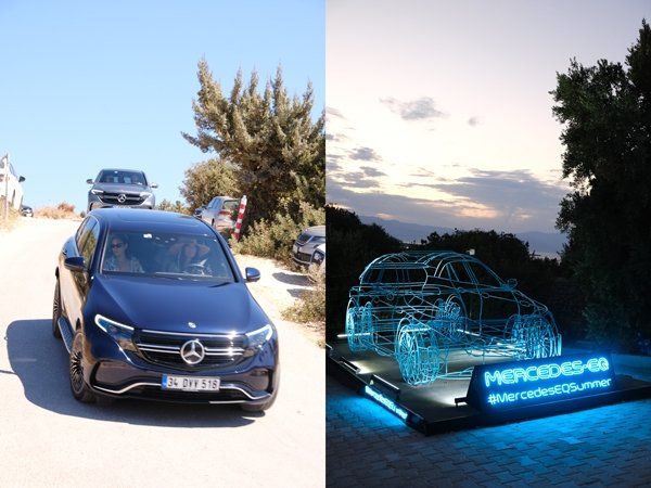 The Beach of MOMO'nun yaz boyu büyük ilgi gören menüsünden özel lezzetlerin sunulduğu yemek ve ardından günbatımı partisinde keyifli anlar yaşayan tüm konuklar; öncesinde Mercedes-EQ ailesinin tamamen elektrikli ilk modeli EQC'yi de deneyimleyerek hep birlikte keyifli bir yol hikayesine imza attılar.