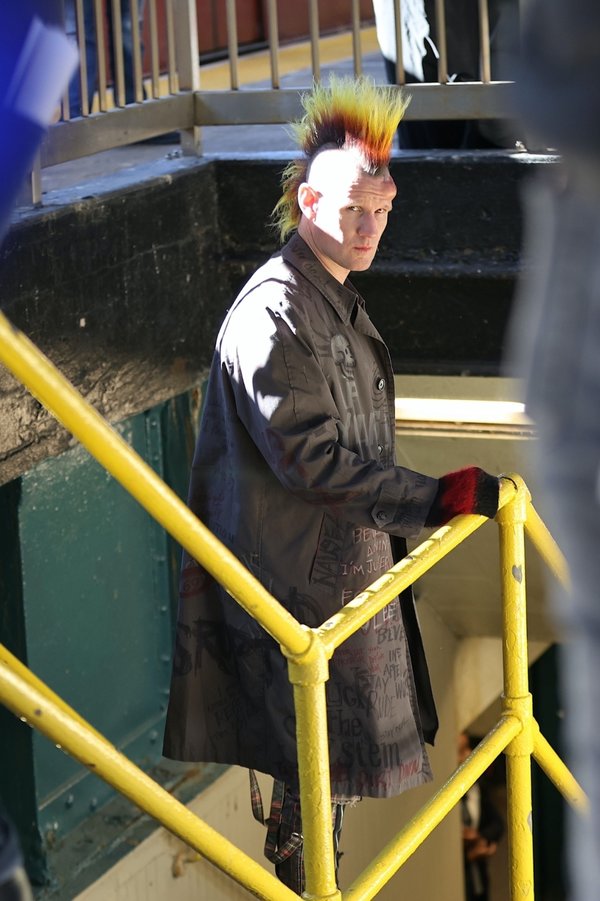 Matt Smith "Caught Stealing" setinde bir tren istasyonunda yeni bir sahne çekiyor. (Fotoğraf Getty Images)