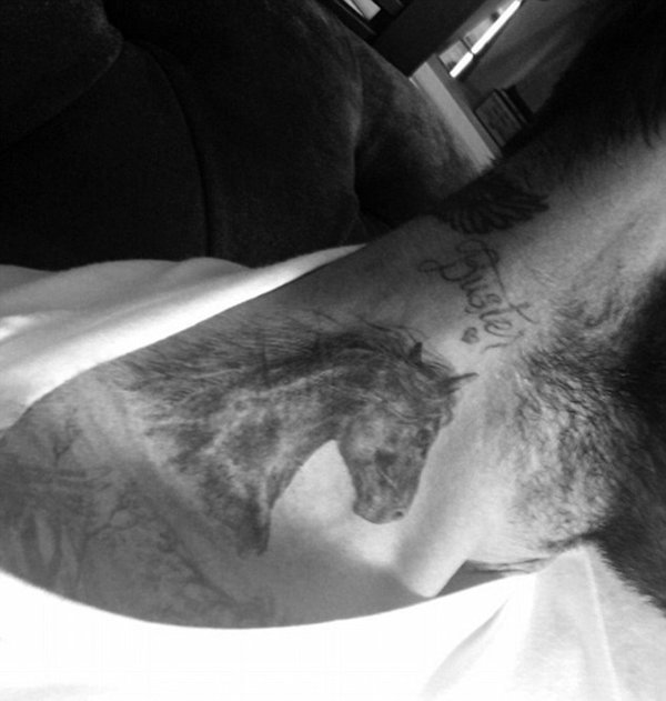 Moda tasarımcısı 44 yaşındaki Victoria Beckham, David Beckham'ın at dövmesini gösteren fotoğrafını Instagram hesabından paylaşmış ve hayranlarını şaşırtmıştı. Hollywod yıldızlarının tercih ettiği Shamrock Social Club adlı dövme salonunda boynuna yeni dövmesini yaptıran David Beckham dövme sanatçısı Mark Mahoney'e sosyal medya üzerinden teşekkür etti.