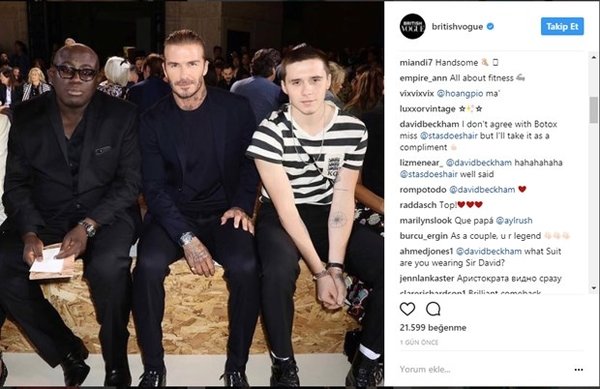 İngiliz futbolcu David Beckham, Instagram'da kendisinin botoks yaptırdığına dair ortaya atılan iddialara cevap verdi. David Beckham, oğlu Brooklyn Beckham ve Edward Enninful'un birlikte görüldüğü fotoğraf sosyal medya kullanıcıları arasında tartışmalara neden oldu.
