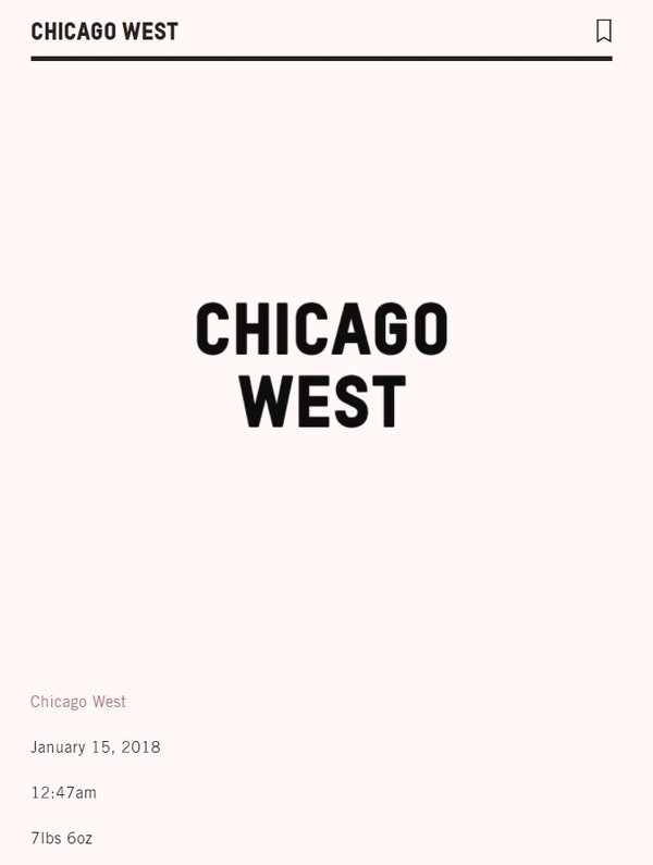 Çocuğa, rapçi babası Kanye West'in doğup büyüdüğü şehir olan "Chicago" ismi verildi.
