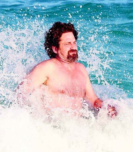 Bir arkadaşlarının düğünü için Meksika'da bulunan çift, günü denize girerek geçirdi. Dalgalar yüzünden zor anlar yaşayan Butler, daha sonra plajda arkadaşlarıyla buluştu. Oldukça kilo aldığı görülen Butler'ın, 'Kral Leonidas'ı canlandırdığı '300 Spartalı' filmindeki kaslı halinden eser yoktu.