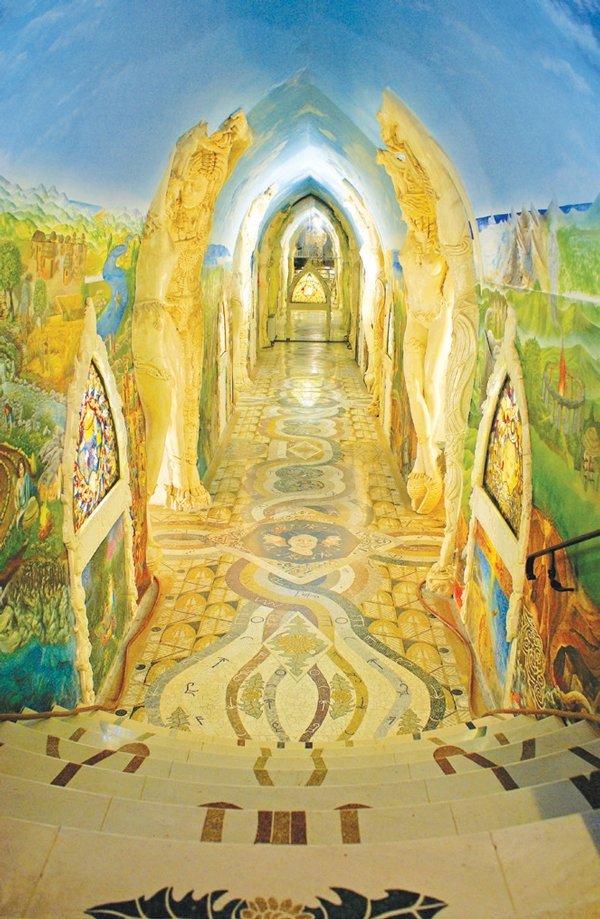 Tapınağa ulaştığınızda karşınıza ilk çıkan bölüm 'Hall of Earth'(Gezegen Salonu). İki ayrı odadan oluşan ve 'sonsuzluk' sembolü şeklinde tasarlanan salonun, tavanı ve zemini de dâhil, dört bir yanı insanoğlu ve dünyadaki yaşantıyı yansıtan, farklı anlamlar ifade eden boya, mozaik ya da cam malzemeden üretilmiş resim ve imgelerle sarılı. Salon, gezegenin ruhsal bütünlüğünü yansıtıyor.