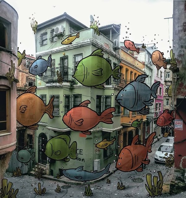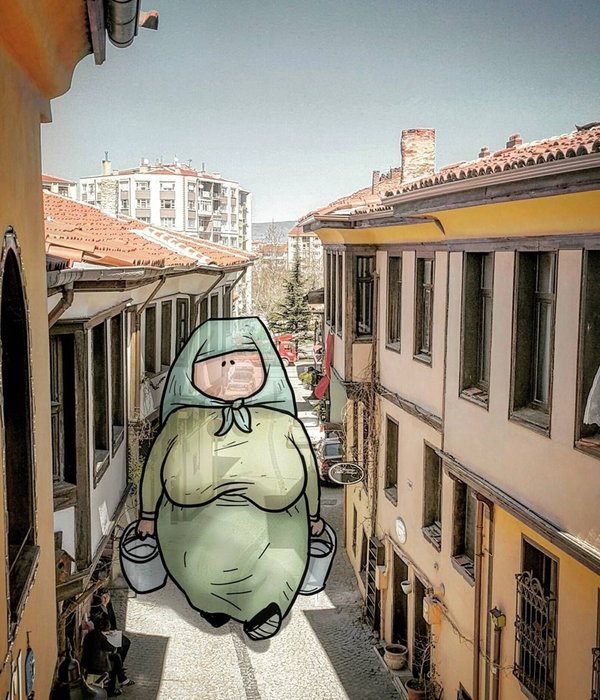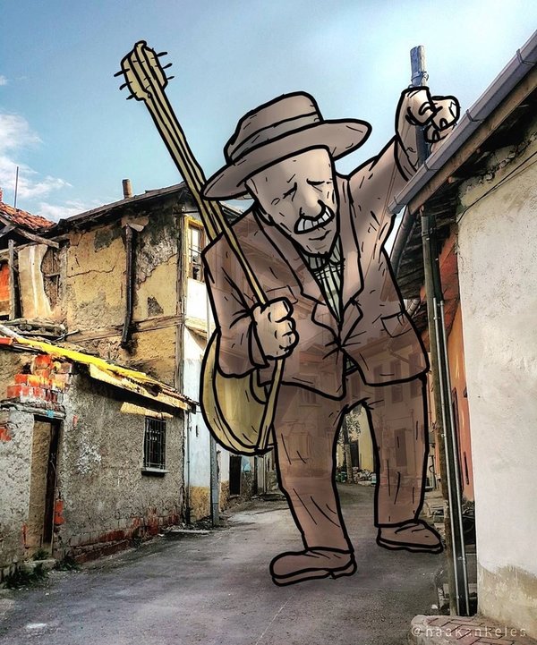 Sanatçı Hakan Keleş, sokakların hikayelerini, gerçek insanları cüceleştiren dev illüstrasyonlarla anlattı. İllüstrasyonlarda Nasreddin Hoca, Aşık Veysel, Cem Karaca, Neşet Ertaş gibi isimlere de yer verdi.
