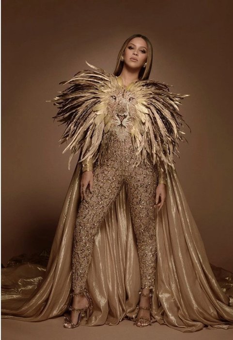 Beyonce geçtiğimiz günlerde katıldığı bir sanat etkinliğinde Aslan Kral'a göndermede bulunduğu elbisesi ile konuşulmuştu. Altın rengi bir catsuit giyen Beyonce, aslan yüzünün öne çıktığı kıyafetini The Lion King'den yola çıkarak hazırlattı.