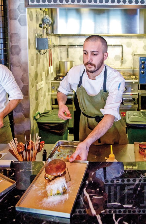 "Okan ile Uraz böyle bir mekân açma fikirleri olduğunu söylediklerinde daha önceden fast food üzerine hizmet veren bir mekân deneyimim olmadığı için biraz tereddüt ettim. Bir yandan da heyecanlandım tabii. Ağırlıklı olarak akşam yemeği servisi veren restoranlarda çalıştığım için bu kadar dinamik ve hızlı bir mutfakta çalışacak olmak beni meraklandırmıştı açıkçası. Çünkü böyle bir dükkânın mutfağında normal restoranlara göre çok daha hızlı olmanız ve aynı zamanda çok daha fazla kişiye ulaşabileceğiniz bir ortamı sunmanız gerekiyor." diyerek projeye dahil oluşunu anlatan genç şef, hazır heyecanın tavan yapmışken hemen teklifi olumlu yönde değerlendirdiğini ve menü üzerinde çalışmaya başladığını anlatıyor. "Mekân üzerinde yaklaşık 1,5 ay teorik olarak çalıştık. 'Neyi nasıl yapalım, aslında biz ne istiyoruz'a ağırlıklı olarak kafa yorduk. Mekânın açılmış olmasına bakmayın, halen üzerinde çalışıp rötuşlar yapmaya devam ediyoruz. Burası bebeğimiz gibi!"