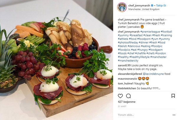 27 yaşındaki Gündoğan; takım arkadaşları Kevin De Bruyne, Gabriel Jesus, David Silva ve Sergio Agüero gibi dünyaca ünlü şef Jonny Marsh ile çalışmaya başladı. Her gün dünyaca ünlü aşçının kendisi için özel olarak hazırladığı sağlıklı yemekleri yiyen İlkay Gündoğan, Michelin yıldızlı şefe şiş kebap ve çılbır yapmayı öğretti.