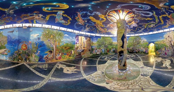 Tapınağa ulaştığınızda karşınıza ilk çıkan bölüm 'Hall of Earth'(Gezegen Salonu). İki ayrı odadan oluşan ve 'sonsuzluk' sembolü şeklinde tasarlanan salonun, tavanı ve zemini de dâhil, dört bir yanı insanoğlu ve dünyadaki yaşantıyı yansıtan, farklı anlamlar ifade eden boya, mozaik ya da cam malzemeden üretilmiş resim ve imgelerle sarılı. Salon, gezegenin ruhsal bütünlüğünü yansıtıyor.