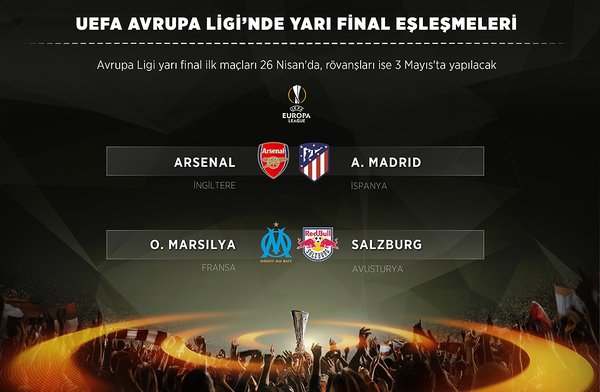 Diğer yarı final eşleşmesinde ise Fransa'nın Olympique Marsilya takımı, Avusturya temsilcisi Salzburg'u ilk maçta konuk edecek.