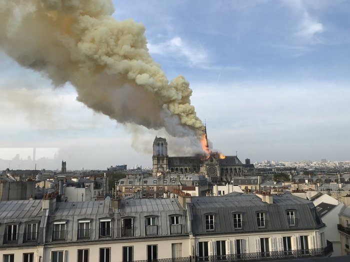Paris'te 850 yıllık tarihi Notre Dame Katedrali'nde yangın çıktı, Katedralin çatısının tamamı çöktüğü ve kulenin yıkıldığı açıklandı. Yangın 8,5 saat sonra söndürüldü.