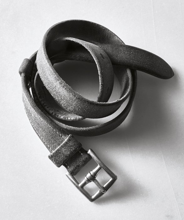 Genç bir adamken fotoğrafçı olmak için İsviçre'den Paris'e taşınmıştım ve hiç param yoktu. Narin, aç ve kafası karışık biriydim. Paris'te yaşayan bir akrabam, "Senin kemerin yok mu?" diye hayretle sordu ve bana doğum günü hediyesi olarak bu kemeri aldı. Eskiden zayıfladıkça delik açtırırdım, şimdiyse keşke deri kısmını uzatabilsem diyorum." —Henry Leutwyler