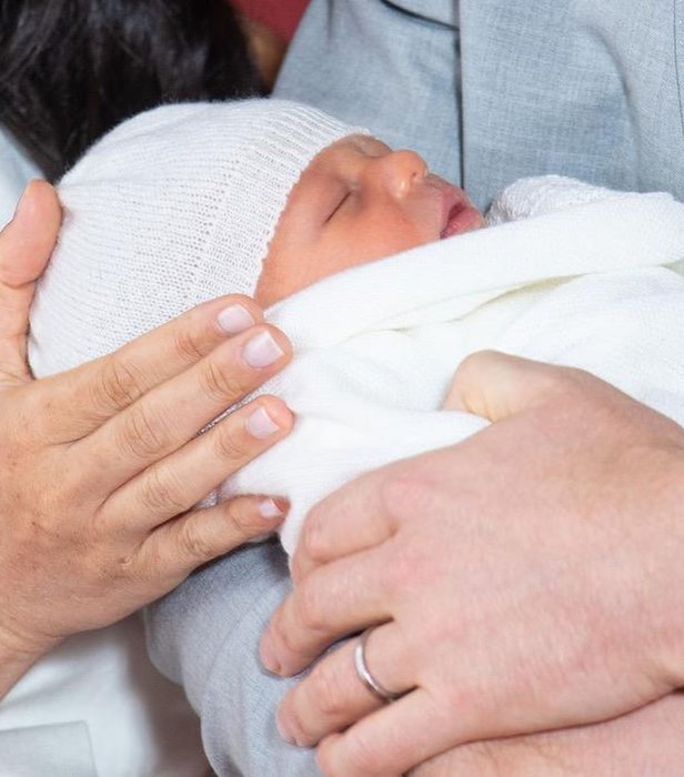 Cambridge Dükü ve Düşesi'nden farklı olarak, Meghan ve Harry bebekleriyle ilk fotoğrafı 2 gün sonra kendi seçtikleri mekan olan Windsor Şatosu'nda verdi. Sussex Dükü ve Düşesi bugün yeni doğan oğullarını Windsor'da dünya medyasıyla tanıştırdı. Meghan Markle fotoğraf çekimi sırasında kolsuz, kuşaklı, beyaz ve trençkottan ilham alan bir elbise tercih etti.