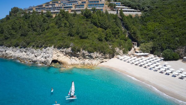 Kayalıklar arasına gizlenmiş plajı ve havuzu ile hafızalara kazınan bu otelde konaklamak istiyorsanız erken rezervasyon şart.