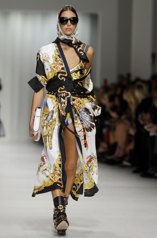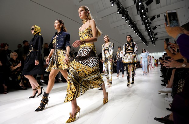 Ünlü tasarımcı Gianni Versace'nin 20.yıl dönümünü anmak için bir araya gelen modeller, modaevinin İlbahar/Yaz 2018 defilesinin kapanışında yürüdü.