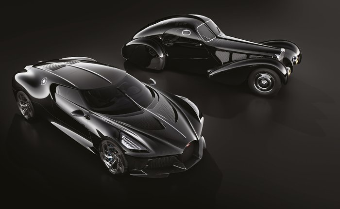 Rengini gövdesini oluşturan karbon fiberden alan bu simsiyah otomobilin birkaç önemli özelliği bulunuyor. İlki, ismini aldığı otomobil. Ettore Bugatti'nin en büyük oğlu olan Jean, 1920'li yıllarda yaptığı tasarımlarla zamanının önünde ve çok yetenekli bir tasarımcı olduğunu kanıtlamıştı. Özellikle o yıllarda çok az sayıda kişinin anlayabileceği oranlar ve aerodinamik tasarımlarla öne çıkıyordu. 1939 yılında hayatını kaybettiği trajik trafik kazasına kadar, o dönemler için son derece olağandışı tasarımları Bugatti'nin ününe ün katmıştı. İşte o otomobillerden biri olan, 1936-1938 yılları arasında sadece 4 adet üretilen Type 57 SC Atlantic'in birini de Jean Bugatti kullanıyordu. Jean Bugatti, bu tasarım harikası otomobiline "La Voiture Noire", yani "Siyah Otomobil" adını takmıştı. Üretilen dört örnekten üçü koleksiyonerler tarafından muhafaza edilse de Jean Bugatti'ninki İkinci Dünya Savaşı sırasında ortadan kayboldu. Büyük ihtimalle Alman işgali sırasında zarar görmemesi için saklandığı düşünülüyor ve otomobil tarihinin en önemli gizemlerinden biri olmayı sürdürüyor. Eğer bir gün bulunabilirse, otomobil tarihinin en pahalı otomobili unvanını alması işten bile olmayacaktır.