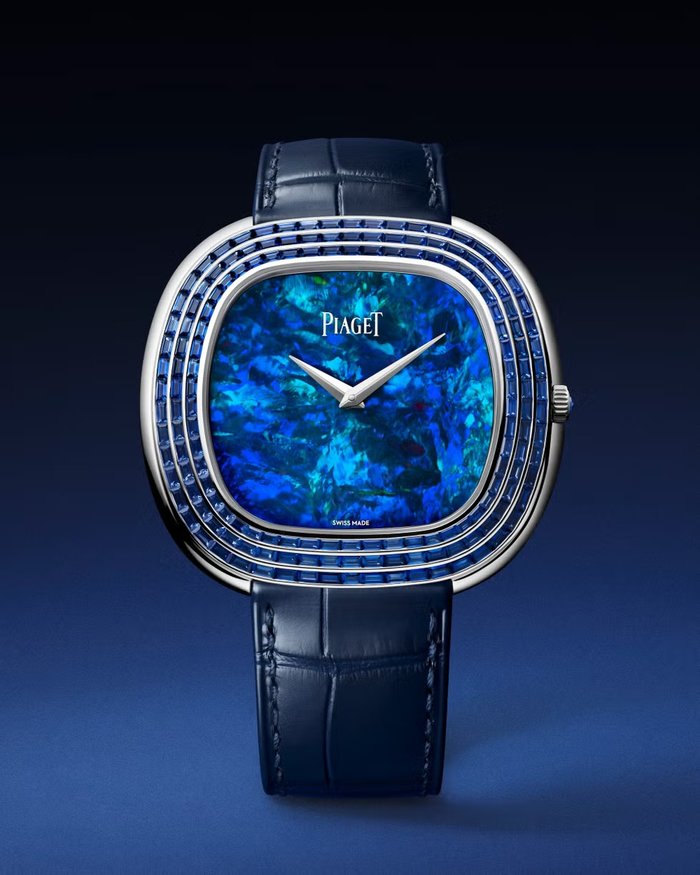 Piaget bu modelin yanında, 2024'ün mavi meteorlu Andy Warhol Clou de Paris saatinin yanında yer alacak iki saat daha duyurdu. Çarpıcı bir şekilde altmışlı yıllardan esinlenen renk paletine sahip olan taş, ustalıkla kesilerek doğal grafik çizgilerin ve opalesan parlaklığın bir kombinasyonu haline getirilmiş.