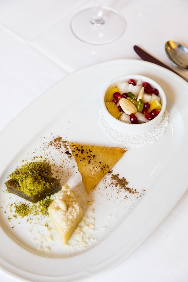 Gelelim her gün öğle servisiyle kapılarını açan Asitane Restaurant'ta neler yiyebileceğinize… Menüye geçmeden önce mekânın Çarşamba günleri kapalı olduğunu ve akşamları da saat 23.00'te mutfağın servise kapandığını belirteyim. Asitane Restaurant'ta yaz ve kışa özel menü sunuluyor. Menüde yaz günlerine özel iki çeşit çorba sunuluyor; 'Badem Çorbası - 1539' (18 TL), 'Kestaneli Terine Çorbası – 1469' (17 TL). Çorba tercih etmeyenler sofrasını birbirinden iddialı 'Soğuk İştah Açıcılar' ile renklendirebilir. 'Asitane Lokmaları' adı altında sunulan kuş üzümlü, çam fıstıklı ve tarçınlı nohut ezmesi 'Hums Lokması – 1469', biberiye ve pul biber ile tatlandırılmış taze soğan, sivri biber ve domatesli lor peyniri 'Lor Mahlutu - 1898), 'Fava' ve 'Dövme Hıyar Tarator – 1844) tercih edebilirsiniz. Tüm 'Asitane Lokmaları'nın fi - yatı 26 TL. Yine başlangıç olarak tercih edebileceğiniz; sebze ve baharatlarla lezzetlendirilmiş beyinli kuzu gerdan sarması 'Gerdaniyye' (27 TL), 'Vişneli Yaprak Sarma – 1844 TL' (22 TL), 'Karidesli Kalamar Dolması' (32 TL), yoğurt, sarımsak ve zeytinyağı ile harmanlanmış 'Babaganuş' (20 TL), 'Patlıcan ve Kabak Bayıldı Tabağı – 1864' (24 TL).