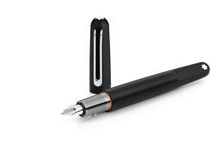Daha önceki sayılarda bahsettiğim mat siyah kalemler modasıyla şimdi matlık kazanan ve bence daha hoş olan Montblanc 'M Ultra Black'e de tüm bu tasarımlarla birlikte baktığımızda bir tasarımcının bütüncül anlayışını görürüz. Newson Louis Vuitton'a tasarladığı dönen bavul gibi bu objede de ufak şaşırtmacalar kullanıp manyetik bir kapak tasarlamıştır, Leica M'de yaptığı gibi kalemine 'Montblanc M' adını vermiştir, Ford otomobilde ve Hennessy parfümde kullandığı gibi imza rengi turuncu, kaleme bir halka olmuştur.