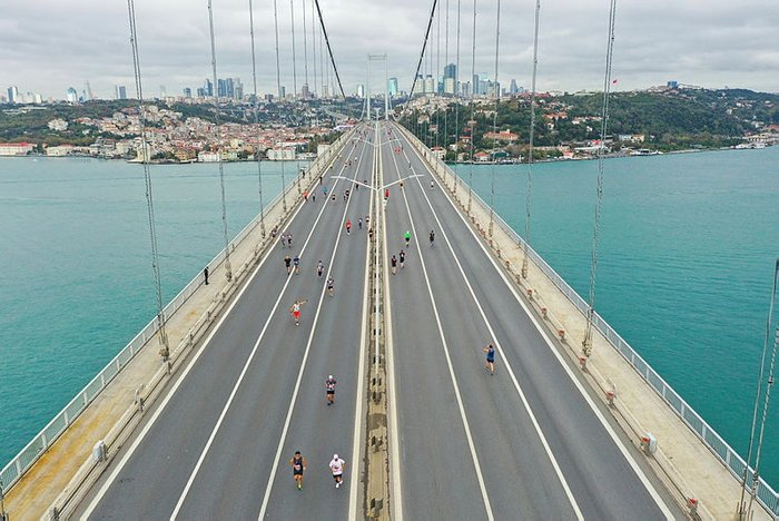 42. İstanbul Maratonu'nda koronavirüs önlemleri kapsamında parkur değişikliğine gidilirken, 15 Temmuz Şehitler Köprüsü organizasyon tarihinde ilk kez 2 kere geçilecek.