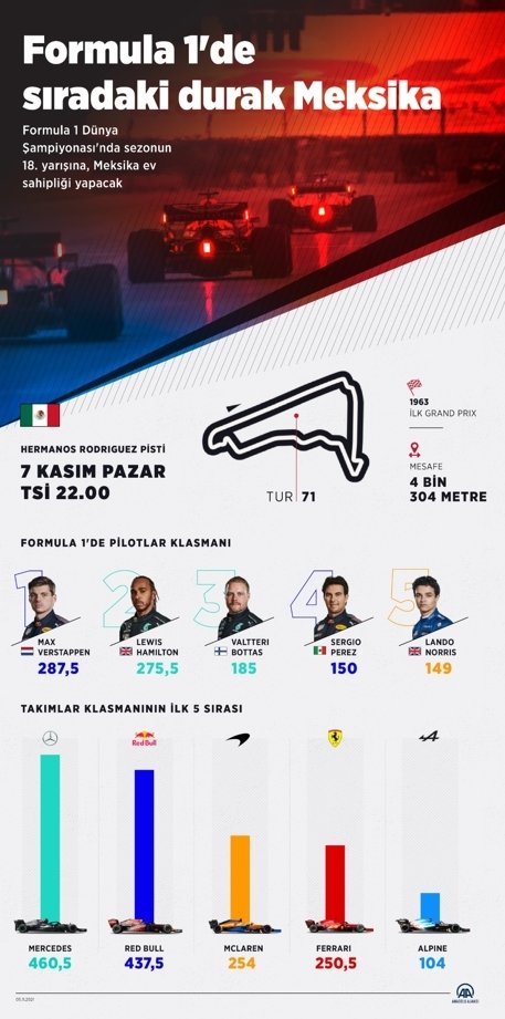 Formula 1 Dünya Şampiyonası'nda sezonun 18. yarışına, Meksika ev sahipliği yapacak.