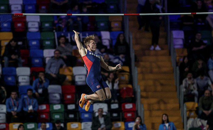 Erkeklerde sırıkla uzun atlama yarışında Norveçli sporcu Sander Skotheim de atlayışını gerçekleştirdi.