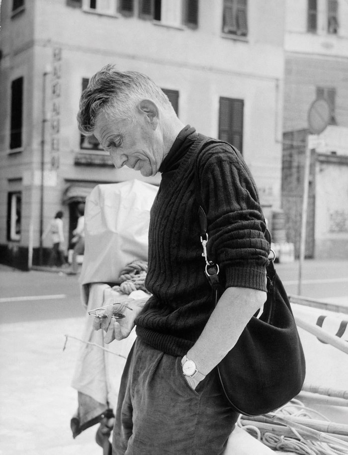 Yaşamında ve sanatında minimalist bir adamdı, cümlelerini ve kişisel hayatını ise mümkün olduğunda açmayı severdi. Beckett'ı düşündüğümüzde kaçınılmaz bir şekilde tüvit bir ceket, siyah bir boğazlı kazak ve bir Paris kışının devasa grisine karşı koymaya çalışan İrlandalı bir adam düşünürüz. Yine de kendisi minimalist olmanın bir keşiş gibi yaşamak anlamına gelmediğini biliyordu. Azın çok olduğunu bildiği gibi... Hayatın gizli zevkleri içinden kendisine uygun olanı seçmeyi seven biriydi: Viskiden puroya kadar. Nobel Edebiyat Ödülü'nü aldıktan sonra Paris'ten kaçıp Fransa'nın güneyine ya da 1971'de bu fotoğrafın çekildiği İtalya'ya, sakin bir yaz tatili için gidecek kadar bohem biri olduğunu da kanıtlamıştı. O yaz tatillerinde kendi kazağının bir yaz versiyonunu giymiş, aynı zamanda "hobo" olarak da bilinen Gucci bir çantayı koluna takmıştı.