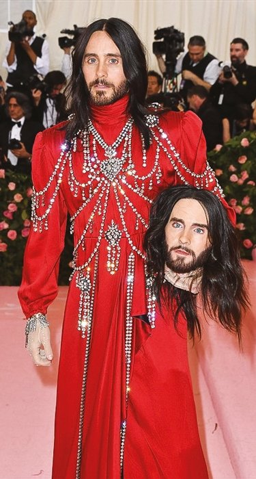 Gelelim Met Gala 2019'a... Bence organizasyonda en güzel giyinen ve farklılığıyla güzel enerji yayan kişi kesinlikle Jared Leto oldu. Gucci yapay aksesuar kafasıyla kırmızı halının bütün objektiflerini kendisine çeviren Jared, gerçekten sıradışı duruşuyla beni oldukça etkiledi. Alessandro Michele'nin Gucci Sonbahar 2018 defilesinden ilham alan bu aksesuar kafa, zaten defilede de çok dikkat çekmişti.