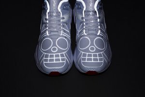Ayakkabı yüzeyi "iyi" tarafı yansıtırken, flaş ışıkla bakıldığında ortaya çıkan imgeler ile "kötü" taraf vurgulanıyor. Yarım buçuk tabanlık ve tamamlayıcı bir kutu, bu motifin altını çizer ve ikincisi, düz beyaz panelli seri yaratıcısı Eiichiro Oda'nın eseridir. Yarım-yarım tasarlanan kutu ise, manga serisinin yaratıcısı Eiichiro Oda'nın eseri. 「善」と「悪」が一つに宿る (İyi ve kötü birlikte yaşar)