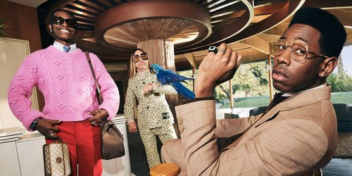 Bu çılgınlığın merkezinde ise elbette yaratıcılık ve üst düzey terzilik var. Neticede Gucci'den söz ediyoruz. Üç ikon isim, Gucci Tailoring koleksiyonundan parçalar giyerken eğlenmeyi de ihmal etmiyor. Kampanya karelerinde; Iggy cüretkar bir leopar desenli kemerli takım, yeşil ve mavi tonlarında üç parçalı takım ve tüvit kareli takım ile karşımıza çıkıyor. Tyler The Creator, kırmızı fitilli kadife takım, petrol mavisi kazak ve makosen kombiniyle görülüyor. Lakabının ardındaki gerçek kimliği Thurnis Haley'i ise dore "GG" motifli yeşil yeleği, çizgili mavi gömleği ve kareli pantolonuyla dışavuruyor. Aralarında belki de en 'janti' olansa "GG" logolu çizgili takımlar ve siyah smokin giyen A$AP Rocky. Bu, kesinlikle bir parçası olmayı seve seve seçeceğimiz türden bir kaos.