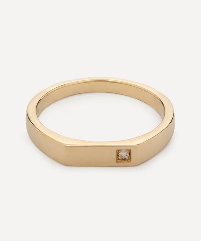 Eşsiz ama sıra dışı olmayan minimalist yüzük son derece zarif. Geri dönüştürülmüş metaller ve sürdürülebilir laboratuvar ortamında yetiştirilmiş pırlantalar kullanılarak yapılmış. Her bir yüzük sipariş üzerine özel olarak üretiliyor.