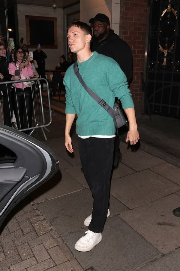 Tom Holland'ın çapraz askılı çantası sade, minimalist ve işlevsel; pratik kullanım için mükemmel.
