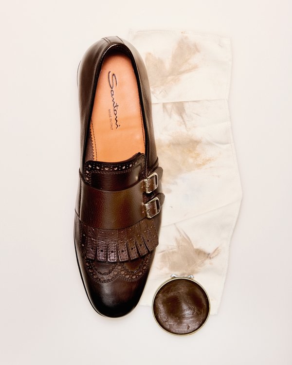 Bu modelde dikkat çekici epey detay var: Tokalı bağcık ve brogue deseninin yanı sıra, üzerindeki püskül de bu İtalyan yapımı loafer'ı süsleyen bir detay olarak yerini alıyor. Ancak Santoni'nin ayakkabıcı konusundaki uzmanlığı sayesinde, tüm bu detaylar karmaşık değil, aksine oldukça zarif bir etki yaratıyor.