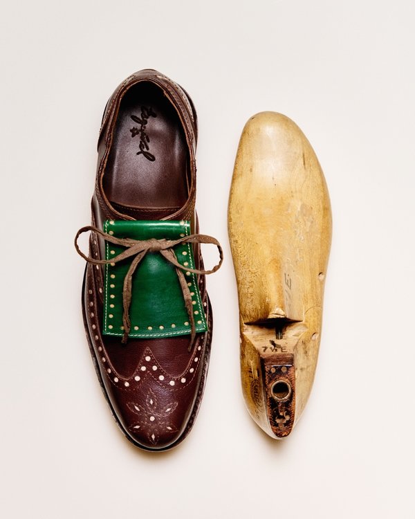 Burun kısmındaki madalyon süslemesi, bağcıkları örten çıkarılabilir deri paneli ve tüm yüzeyi süsleyen trompe-l'œil tekniğiyle boyalı brogue desenleriyle Esquivel'in Vanas modeli, klasik brogue'a modern ve biraz da yaramaz bir yorum getiriyor.