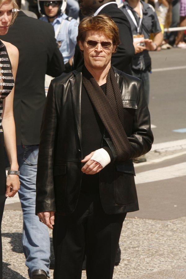 Dafoe bu kombininde iki sebeple cesur: Birincisi, kolundaki askı (şık da olsa) ile moda snob'larının karşısına çıkmayı göze aldı. İkincisi, Güney Fransa sıcağında deri ceket giydi.