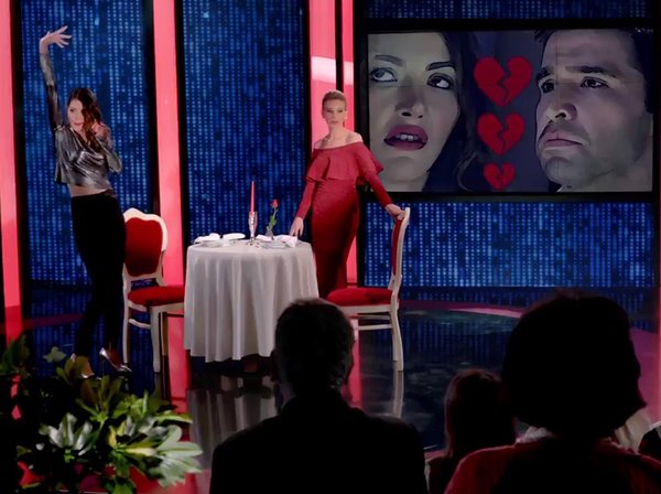 Videoda bir kadın ve erkek, izdivaç programlarındaki gibi ilişki yaşayıp, yaşayamayacaklarına dair konuşuyor.