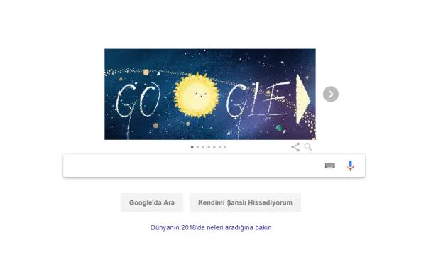 Google ana sayfasında, Aralık ayında gözlemlenebilen ve en yoğun dün gece izlenebilen 'Geminid meteor yağmurunu' anlatan doodle ile kutladı.