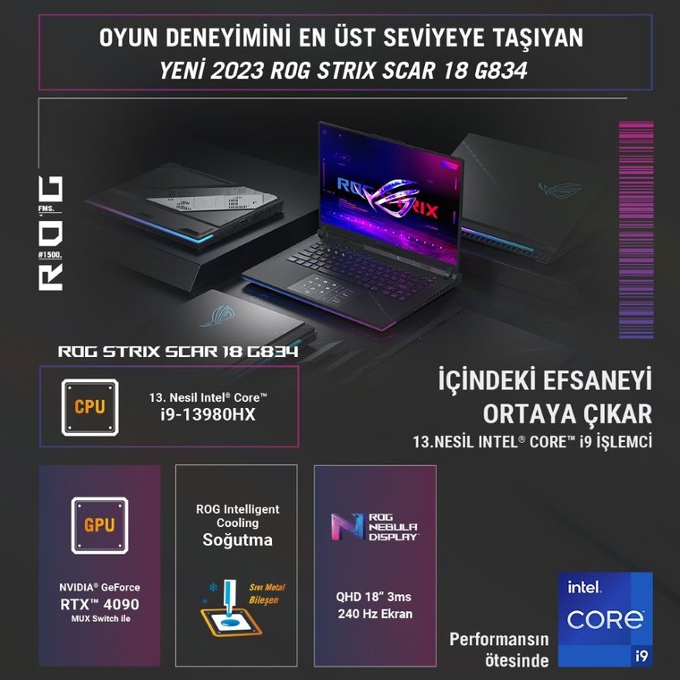 ROG StrIx SCAR Serisi'nin G634 16 inç ve segmentinde bir ilk olan 18 inç ekranlı G834 Serileri, yeni nesil bileşenler ve akıllı soğutma teknolojileriyle 2023 yılında da ilklere imza atıyor. Segmentine getirdiği bir çok ilkle yine adından söz ettiren ROG Strix SCAR Serisi, hem espor profesyonellerinin hem de amatör oyun meraklılarının gücüne güç katmaya hazır.