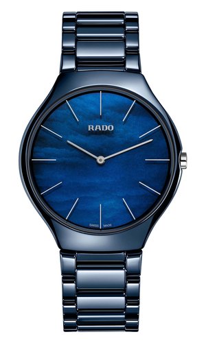 True Thinline Nature Koleksiyonu'nda üç model var: Toprak (Earth), Su (Water) ve Yaprak (Leaf ). Dört elementten biri eksik koleksiyonun ilk üyesi 'Earth'ün kadranının kumlu ve simli görüntüsü, gerçekten de toprağı hatırlatıyor; 'Earth', akşam herkesin en çok dikkatini çeken model oluyor aynı zamanda. Gece mavisi renkli monoblok 'Water'ın sedef kadranı, suyun gelgitini yansıtır biçimde dalgalı. 'Leaf' ise benim kişisel favorim; sedef kadrandaki yaprak görüntüsü, üzerindeki su yollarıyla gerçek bir yaprak gibi görünüyor. Üç saatin pembe altın, sarı altın ve rodyum renklerindeki ibreleri, saatlerin renklerine uygun olarak seçilmiş. Saatlerin mekanizmaları ise quartz bir ETA makinesi olan 282.000. Saatlerin kadranının sedef olması, ışığa göre renk değiştirmelerini sağlıyor; Rado logosu ve indeksler ise hoş bir detay olarak kadrana değil, saatin camının üzerine yazılmış. Saatler, 39mm kasaya, 5mm inceliğe sahip; yazın rahat ettiren seramik saatlerin arka kısımları ise titanyumdan üretilmiş.
