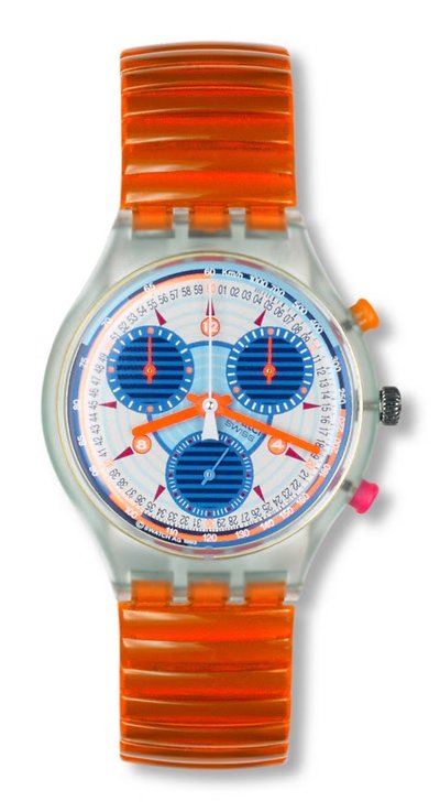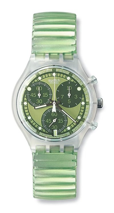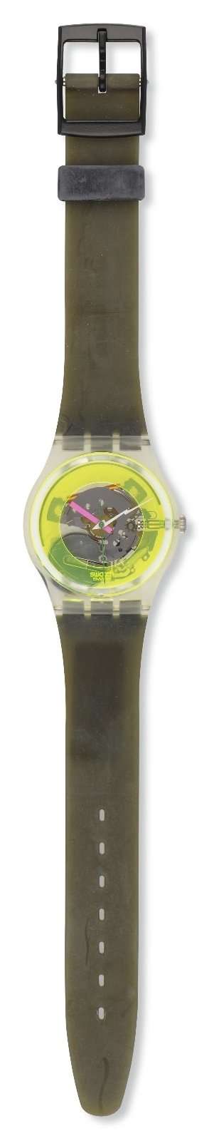 Bu saatin bugün yeniden üretilmeye çok uygun olduğunu düşünüyorum çünkü renginin tonu o kadar derin ve yoğun ki, kolayca farklı çeşitleri yapılabilir. Kırmızı, turuncu, mavi ile bir dizi saat olabilir. Swatch'un pazarlama departmanında çalışsaydım bu yolu seçerdim."