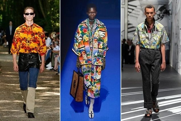 Grafik baskılı sezon gömlekleri, Guy Fieri tarzı alevlere sahip Prada gömlekleri ve Casablanca'nın gösterişli ipek tasarımlarıyla birlikte 90'ların en parlak döneminden bu yana gerçek bir ışıltıya sahipti.