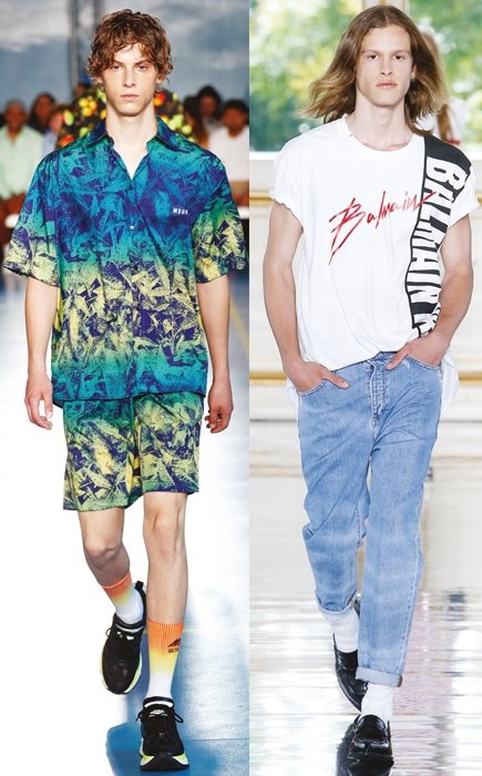 Vintage etkisi, 90'ların oversize ve hacimli görüntüsü, neon renkler, koyu çiçek ve manzara baskıları, desenli ya da düz kısa kollu rayon, vizkoz ya da koton Hawaii gömlekler, retro görünümlü jakarlı ve renk bloklu kısa kollu trikolar, çizgili gömlek ve polo tişörtler, alt üst uyumlu eşofman takımlar, bol kesim kargo pantolon ve bermudalar, bomber montlar sezonun önemli trendleri. Logomania ise azalarak da olsa devam ediyor.