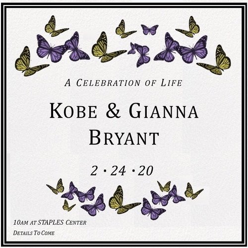 Kobe Bryant ve kızının cenaze töreninin ne zaman yapılacağı merak edilirken, 7 Şubat'ta Orange County yakınlarında bulunan Pacific View Memorial Park mezarlığına defnedildikleri öğrenildi. Alınan bu karar ünlü basketbolcunun hayranları tarafından tepkiyle karşılandı. Bunun üzerine 24 Şubat'ta Staples Center'da anma töreni gerçekleştirilmesine karar verildi.